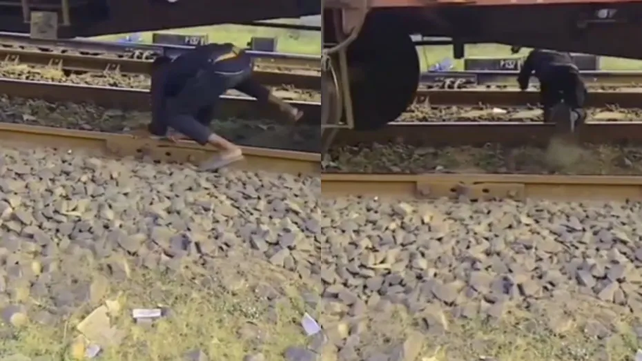 सोशल मीडिया पर अभी जो वीडियो वायरल हो रहा है उसमें नजर आ रहा है कि एक ट्रेन पटरी पर चल रही है। ट्रेन के चालू होते या फिर रूकते समय जो रफ्तार होती है, उसकी भी वही रफ्तार है। मतलब ट्रेन धीमी रफ्तार में है। और इसी बीच एक शख्स ट्रेन के पहियों के बीच में बची जगहों से पटरी को पार करने लगता है। पहले वो पटरी के बीच में जाता है और फिर थोड़ी देर रुककर पहियों को देखता है और जैसे ही उसे सुरक्षित लगता है वो पटरी को पार कर जाता है। इस तरह का खतरनाक स्टंट करना पूरी तरह से बेवकूफी है और ऐसे स्टंट से हर किसी को दूर रहना चाहिए।