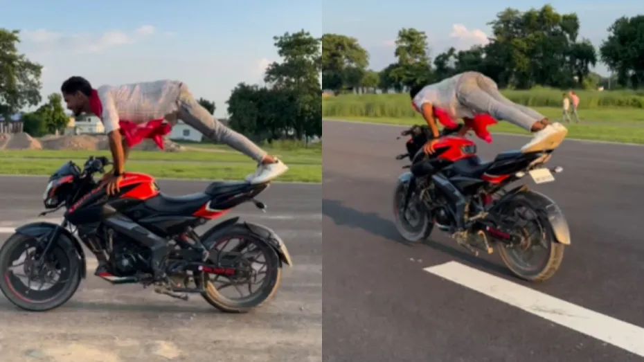 शख्स ने चलती बाइक पर लगाए पुशअप