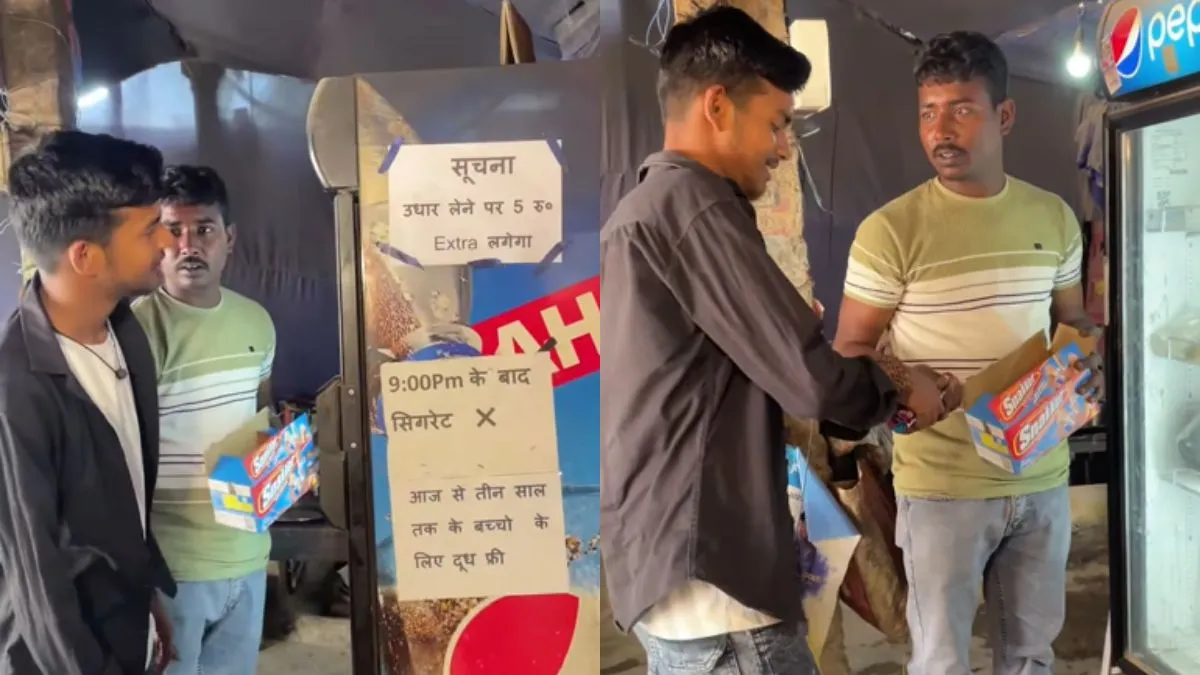 अभी जो वीडियो वायरल हो रहा है उसमें एक बंदा नजर आता है जो एक पोस्टर दिखाता है। इसके साथ ही आवाज आती है जिसमें सुनाई देता है कि उसने उधारी खत्म करने के लिए एक स्कीम निकाला है। उस पोस्टर पर उसकी स्कीम के बारे में लिखा है। वहां लिखा है, 'सूचना, उधार लेने पर 5 रुपए ज्यादा लगेगा।' इसका मतलब कि कोई भी उससे कुछ उधार लेगा तो जब चुकाएगा, उस पर 5 रुपए ज्यादा देना होगा। वो उसे दुकान में लगा देता है और बोलता है कि जो भी लोग उधार लेने आते थे, उन्हें वो यह दिखा देता था तो वो कैश में ही सामान लेते थे।