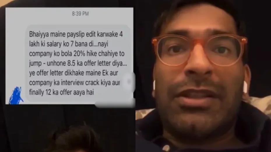 अभी जो वीडियो वायरल हो रहा है उसमें एक बंदा नजर आ रहा है जो किसी शख्स के कमेंट या फिर पोस्ट को पढ़ रहा है। उस पोस्ट में लिखा है, 'भैया मैंने पे-स्लिप एडिट करवा कर 4 लाख की सैलरी को 7 बना दी, नई कंपनी को बोला 20% हाइक चाहिए, उन्होंने 8.5 लाख का ऑफर लेटर दिया। ये ऑफर दिखाकर मैंने एक और कंपनी का इंटरव्यू क्रैक किया और अब आखिरकार 12 का ऑफर आया है।' वीडियो में दिखने वाला बंदा यह पूरा पढ़ने के बाद बोलता है, 'भाई तू कॉर्पोरेट का सांप नहीं कोबरा है। यार तू 4 से सीधे 12 चला गया, बिना कुछ नया सीखे। एक दिन तू मैनेजर जरूर बनेगा, तेरे में गुण है। लोग हाइक के लिए मेहनत कर रहे हैं और तू फोटोशॉप कर रहा है। जिस दिन तू पकड़ा जाएगा, तुझे निकालने और सर्टिफिकेट में फ्रॉड लिखेंगे।'