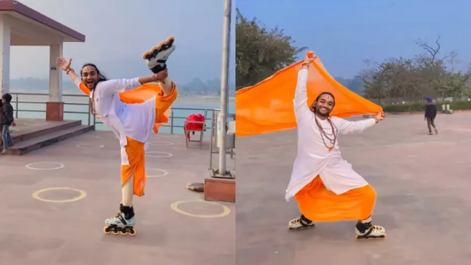 सोशल मीडिया पर हर दिन भगवान राम और राम मंदिर से जुड़े कई पोस्ट और वीडियो वायरल हो रहे हैं। आपने भी ऐसे कई पोस्ट और वीडियो अब तक देख लिए होंगे। मगर यह वीडियो शायद ही देखा होगा। वायरल वीडियो में आप देख सकते हैं कि एक शख्स ने सफेद रंग का कुर्ता और भगवा रंग की धोती पहनी हुई है। उसके पैरों में आपको स्केट नजर आएंगे। बंदा किसी नदी के किनारे बने घाट पर मौजूद है और 'युग राम राज का आ गया' भजन पर झूमता हुआ नजर आ रहा है। वीडियो सोशल मीडिया पर खूब वायरल हो रहा है।