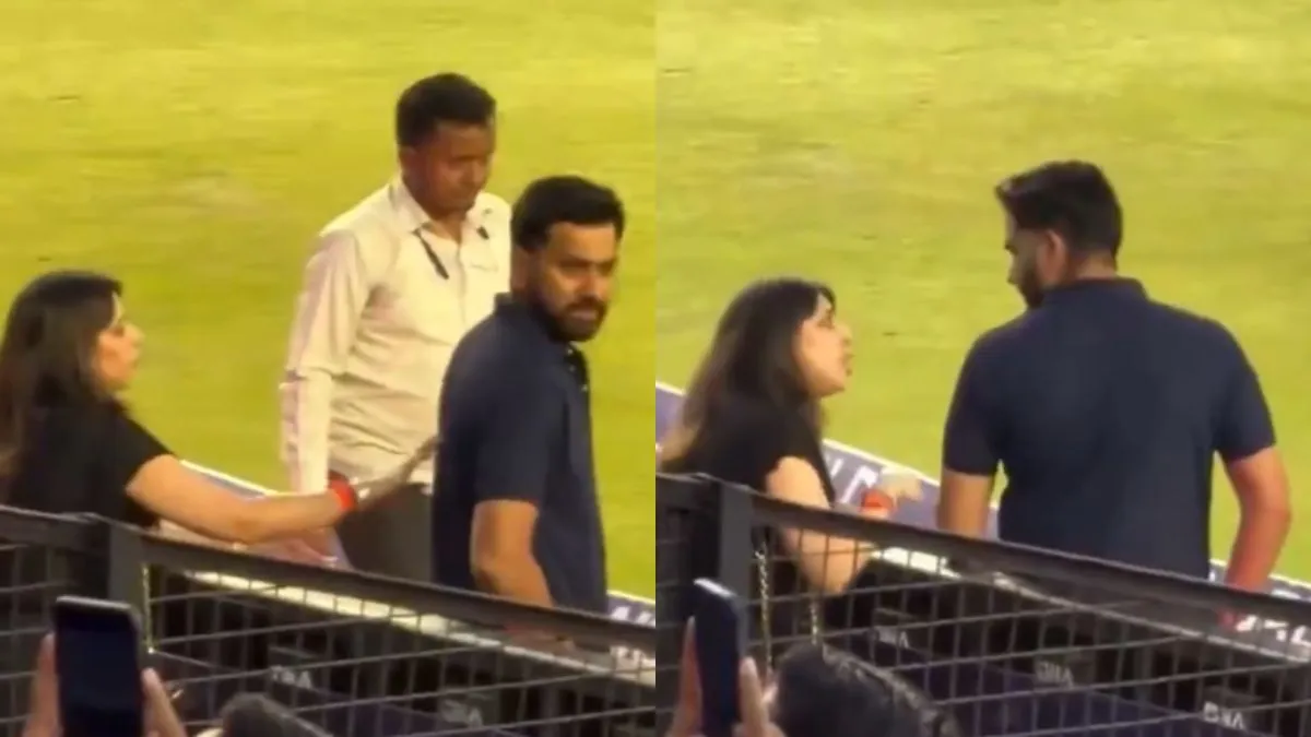 अभी जो वीडियो वायरल हो रहा है उसमें नजर आता है कि रोहित शर्मा अपनी पत्नी के साथ बाऊंड्री के इस तरह खड़े हैं और उनकी पत्नी उनसे कुछ कह रही हैं मगर तभी रोहित शर्मा उस पर कुछ इस तरह रिएक्ट करते हैं जैसे उन्हें उनकी बात सही नहीं लगी या फिर उस टॉपिक पर बात नहीं करना चाहते हैं। इसके बाद रोहित शर्मा जब दूसरी तरफ देखने लगते हैं तो उनकी पत्नी उन्हें अपनी तरफ बुलाती हैं और अपनी बात कहने लगती हैं मगर इस पूरी बातचीत के दौरान रोहित शर्मा का रिएक्शन बहुत ही लाइट रहता है और अंत में उनकी पत्नी हंसते हुए नजर आती है। अब दोनों के बीच में क्या बातचीत हुई, ये तो वही दोनों जानते हैं मगर वीडियो काफी वायरल हो रहा है और लोग मजे ले रहे हैं। लोग क्या बोल रहे हैं, वो जानने से पहले आप एक बार वीडियो देख लीजिए।