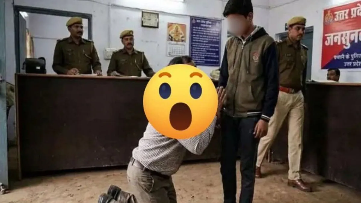 अभी जो फोटो वायरल हो रही है उसमें नजर आता है कि पुलिस थाने में कुछ पुलिस वाले हैं और वहीं एक आदमी घुटनों पर बैठकर एक लड़के के आगे हाथ जोड़ रहा है। अब आपको मामला बताते हैं। पोस्ट के कैप्शन में दी गई जानकारी में लिखा है, 'देवरिया की सदर कोतवाली में 11वीं क्लास के एक लड़के ने अपने पिता के खिलाफ डांटने और कथित तौर पर पीटने की शिकायत दर्ज कराई। पिता के घुटनों पर बैठकर माफी मांगने के बाद बेटा आखिरकार उनके साथ घर लौटने को तैयार हो गया।'
