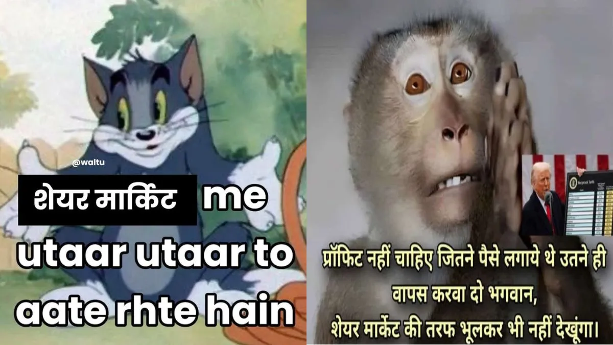 आज शेयर मार्केट में लोगों का जो नुकसान हुआ उसके बाद जो पहला मीम सोशल मीडिया पर दिखा उसमें एक बंदर हाथ जोड़े हुए है। वहीं टेक्स्ट में लिखा है, 'प्रॉफिट नहीं चाहिए जितने पैसे लगाए थे उतने ही वापस करवा दो भगवान, शेयर मार्केट की तरफ भूल कर भी नहीं देखूंगा।'