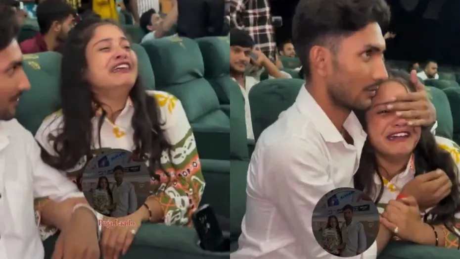 हाल में ही थिएटर में मूवी देखने गए एक कपल का ऐसा ही एक और वीडियो वायरल हो रहा है, जिसमें देखा जा सकता है कि कपल मूवी देखने के बाद काफी गम में डूबा हुआ है। लड़की तो फफक-फफक कर रो रही है। वहीं, लड़की का बॉयफ्रेंड उसके आंसुओं को पोंछकर उसे मनाते हुए नजर आ रहा है। साथ ही वह लड़की को चुप हो जाने के लिए बोल रहा है, लेकिन लड़की की आंखों से आंसुओं का सैलाब बह रहा है। लड़की है कि चुप होने का नाम ही नहीं ले रही है। अपनी गर्लफ्रेंड को ऐसे रोता देख लड़का भी मायूस हो जाता है और अपने जज्बातों पर कंट्रोल करते हुए अपनी आंखें पोंछता है।
