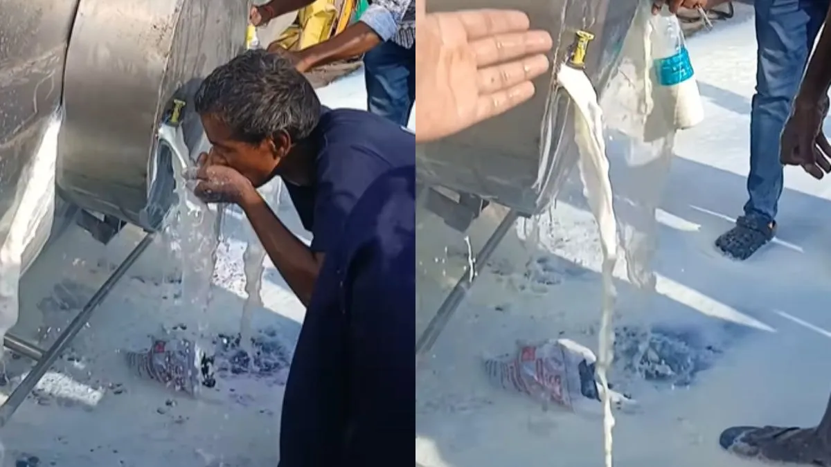 अभी जो वीडियो वायरल हो रहा है उसमें नजर आ रहा है कि एक दूध का टैंकर किसी कारण से पलट गया है और उसमें से अब दूध निकल रहा है। ये दूध जो बाहर निकल रहा है, वो तो पूरा बर्बाद ही होना है तो लोग उसका इस्तेमाल करने के लिए पहुंच गए हैं। लोग अलग-अलग तरीके से दूध को लूट रहे हैं। कुछ लोग दूध को बोतल में भर रहे हैं ताकि घर ले जा सके। वहीं कुछ जिनके पास कोई जुगाड़ नहीं है वो सीधे दूध को पी रहे हैं। अब इस वीडियो को पटना का बता रहे हैं। वीडियो में सबसे ऊपर लोकेशन 'दशरथ मोड़, पटना' लिखा हुआ है।