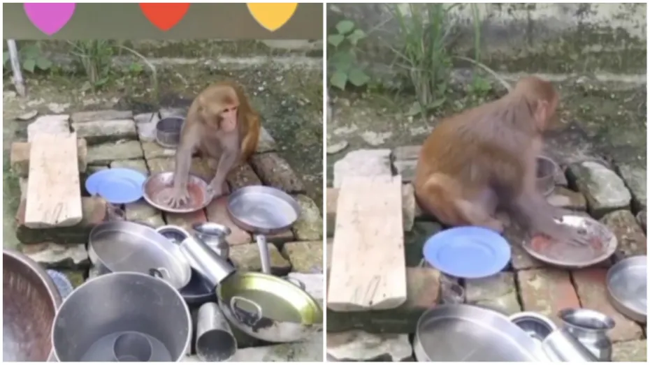 बर्तन धो रहा बंदर