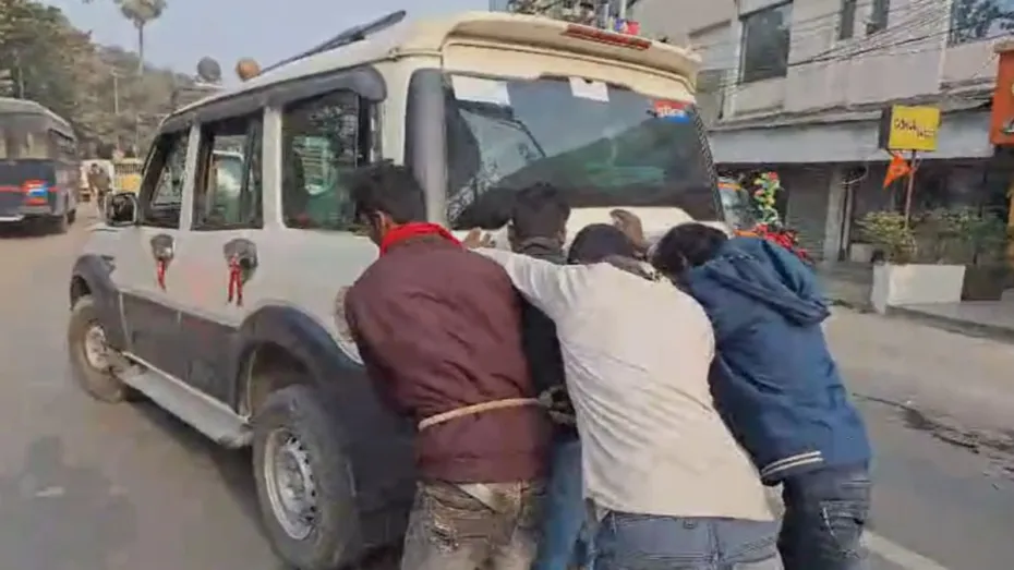 दरअसल, ये वीडियो बिहार के भागलपुर का है, जहां कुछ शराबियों को उत्पाद विभाग और पुलिस ने मिलकर गिरफ्तार किया था। गिरफ्तारी के बाद पुलिस उन कैदियों को पेशी के लिए कोर्ट लेकर जा रही थी। तभी बीच रास्ते में पुलिस की गाड़ी का तेल खत्म हो गया। फिर पुलिस ने कैदियों को गाड़ी से उतरकर धक्का लगाने को कहा। बेचारे शराबी गाड़ी से नीचे उतरकर पुलिस की स्कार्पियो को धक्का लगाने लगे।