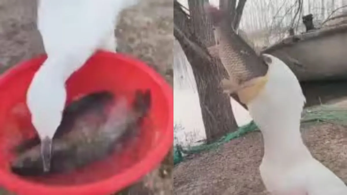 वीडियो में देखा जा सकता है कि एक लाल रंग के छोटे से टब में दो जिंदा मछलियां मौजूद हैं, जिन्हें खाने के लिए एक सफेद रंग का पक्षी वहां पहुंचता है। पहले तो उसे देखकर लगता है कि ये सामान्य सा पक्षी इन मछलियों को नहीं खा पाएगा, लेकिन आगे जो नजारा देखने को मिला उसे देखकर हर कोई हैरान रह गया। पक्षी पहले एक जिंदा मछली को पल भर में निगल लेता है और फिर देखते ही देखते दूसरी मछली को भी अपना शिकार बना लेता है। यह छोटा सा पक्षी जिस तरह से दो जिंदा मछलियों को खाता है, उसे देखकर लोग हैरान हो गए।