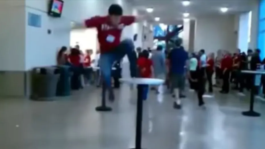 वीडियो में दिख रहा नजारा एक कॉलेज का मालूम पड़ता है। जिसमें एक लड़का एकाएक स्टंट दिखाते नजर आता है। लड़का उछलकर टेबल पर चढ़ने की कोशिश करता है लेकिन बैलेंस बिगड़ने से वह नीचे गिर जाता है। लड़का पीठ के बल जैसे ही नीचे गिरता है वह अचेत हो जाता है और दोबारा वह उठ नहीं पाता। वीडियो देखने से यह पता चलता है कि स्टंट दिखाने के चक्कर में लड़के को बुरी तरह चोट लग गई। यह देख कॉलेज में मौजूद आस-पास के सभी छात्रों की नजर लड़के पर टिक जाती है। वहीं पास में खड़ा कॉलेज का एक स्टाफ लड़के को उठाने के लिए उसके पास आता है। जिसके बाद वीडियो समाप्त हो जाता है।