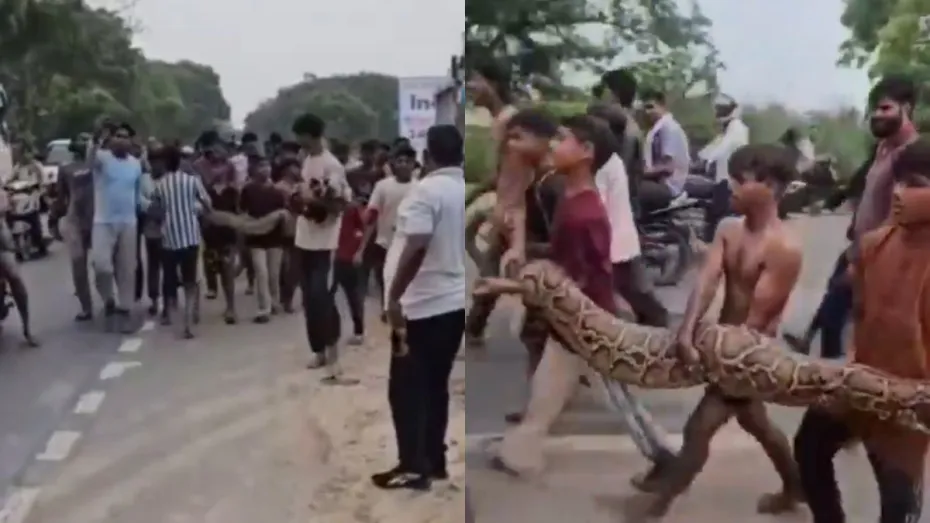 अभी जो वीडियो वायरल हो रहा है उसमें नजर आता है कि कुछ लड़कों का एक झुंड साथ में चलते हुए जा रहा है और उन्होंने कुछ पकड़ा हुआ है। वो जब कैमरे के पास आते हैं तो नजर आता है कि उन्होंने एक सांप को पकड़ा हुआ है। वीडियो में नजर आता है कि उन्होंने एक बहुत ही बड़े से सांप को पकड़ा हुआ है और उसे पकड़े कहीं जा रहे हैं। वीडियो को पोस्ट करते हुए यह दावा किया जा रहा है कि, 'यूपी के बुलंदशहर में 15 फीट लंबा विशालकाय पाइथन देखा गया। ग्रामीणों और बच्चों ने अजगर को अपने हाथों से पकड़ा।'