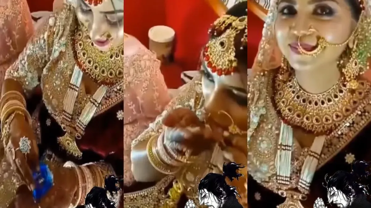 वीडियो में देखा जा सकता है कि दुल्हन शादी की रस्मों के बीच गुटखा निकालती है, उसे फाड़ती है और उसमें जर्दा मिलाती है। इसके बाद वह अपने गुटखे को अपने मुंह में डाल लेती है। फिर वह कैमरे की तरफ देखते हुए स्माइल करने लगती है। दुल्हन की ये सारी हरकतें कैमरे में कैद हो रही होती हैं। शादी में गुटखा खाती दुल्हन का यह बिंदास अंदाज देख लोग हैरत में पड़ गए।