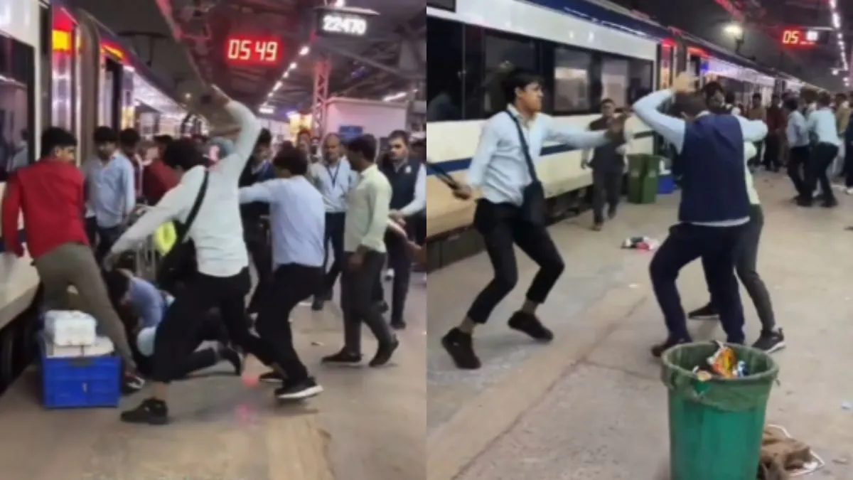 आपने अभी जो वीडियो देखा उसे एक्स प्लेटफॉर्म पर @gharkekalesh नाम के अकाउंट से पोस्ट किया गया है और कैप्शन में इसके संबंध में जानकारी दी गई है। कैप्शन में लिखा है, 'निजामुद्दीन रेलवे स्टेशन पर IRCTC बेल्ट युद्ध। दिल्ली के निजामुद्दीन स्टेशन पर वंदे भारत ट्रेन में तैनात IRCTC कर्मचारियों के बीच क्लेश हुआ जिसमें उन्होंने एक-दूसरे पर डस्टबिन, बेल्ट और घूंसों से हमला किया।' आपने अभी जो वीडियो देखा उसे खबर लिखे जाने तक 6 लाख से अधिक लोगों ने देख लिया है।