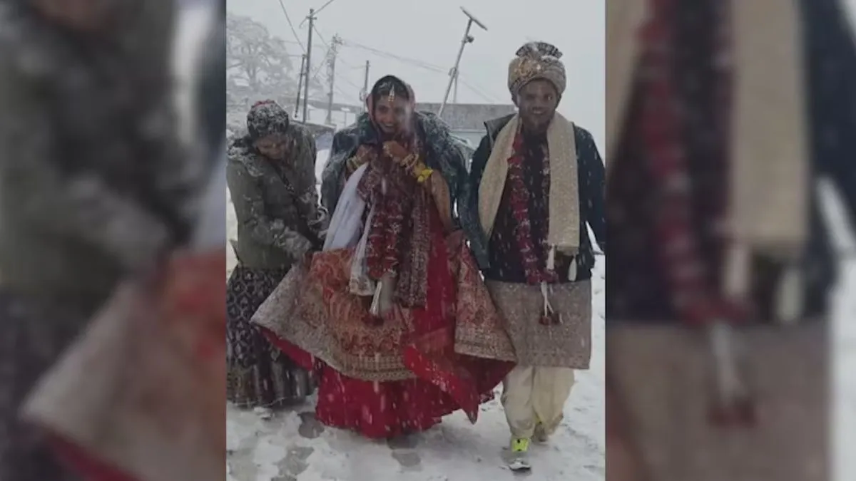 इस वीडियो को इंस्टाग्राम पर mahendrasemwal1 नामक हैंडल से शेयर किया गया है। वीडियो में दुल्हन अपने चमकीले लाल लहंगे में मुस्कुराती हुई और दूल्हा अपनी शेरवानी में आकर्षक लग रहा है, शादी के बाद घनी बर्फ में चलते हुए दिखाई दे रहे हैं। दुल्हन का लहंगा उसके पीछे एक महिला सावधानी से पकड़े है। जबकि दूल्हा जैकेट पहने हुए उसके साथ-साथ चल रहा है। भीषण ठंड के बावजूद, जोड़े ने अपनी खुशी जाहिर करते हुए कहा, 'प्रभु का आशीर्वाद मिल गया।' बर्फ से ढका खूबसूरत नज़ारा और जोड़े की मुस्कुराती मुस्कान ने सबका दिल जीत लिया। मे ने जोड़े को बधाई दी और शादी को अविस्मरणीय बताया।