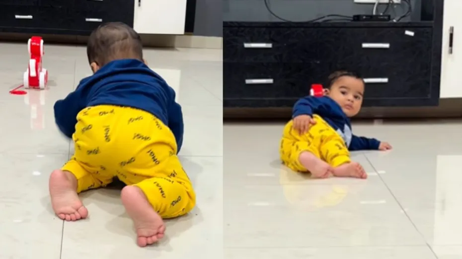इस वीडियो को इंस्टाग्राम पर @viyansh.bamne नामक अकाउंट से शेयर किया गया है। इस वीडियो में क्यूट बच्चे की रील को वायरल 'ठुमक ठुमक' गाने के साथ देखा जा सकता है। नन्हा बच्चा घुटनों के बल कैमरे पर जिस कदर दौड़ लगाता है उसे देखकर यूजर्स उसकी चाल का गाने के साथ उसी वाइब में देखते हैं जो उसकी वास्तविक वाइब है। अंत में बच्चा थककर एक करवट होकर जब लेटता है तो वीडियो की खूबसूरती और भी कई गुना बढ़ जाती है और यूजर्स खिलखिलाकर हंस पड़ते हैं।