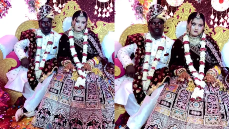 आपने ये एक लाइन जरूर सुनी होगी कि जोड़ियां ऊपर वाला बनाता है, इंसान तो बस उसका बहाना भर होता है। लेकिन कभी-कभी रब ऐसी जोड़ियां भी बना देता है। जिसे देख लोग अपनी आंखें मलने लगते हैं और सोच में पड़ जाते हैं कि ये क्या माजरा है! आखिर ये जोड़ी कैसे बन गई। ऐसा ही एक मजेदार वीडियो इन दिनों सोशल मीडिया पर छाया हुआ है। जहां एक दूल्हा-दुल्हन की जोड़ी को जिसने भी देखा उसकी आंखें चौड़ी हो गई। वजह थी, उन दोनों की रंगत।