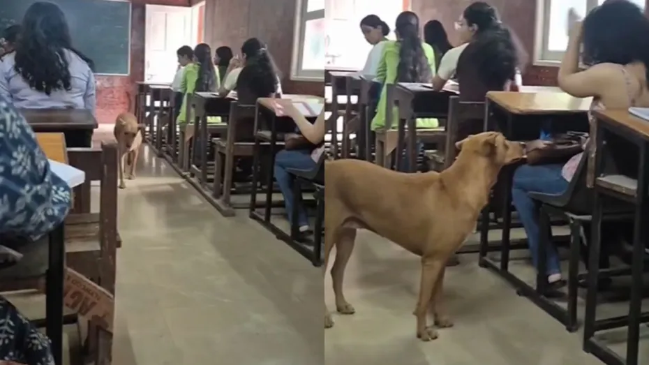 क्लासरूम में कुत्ते ने मारी एंट्री