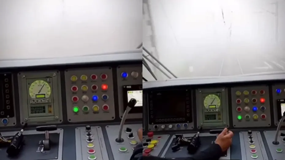 दरअसल, घने कोहरे में ट्रेन चलाना काफी मुश्किल काम होता है। सर्दियों में ड्राइवर को काफी चुनौतियों का सामना करना पड़ता है। वीडियो में आप खुद देख सकते हैं कि एक ट्रेन घने कोहरे की मोटी चादर को चीरते हुए आगे बढ़ रही है। ट्रेन के सामने कोहरे के अलावा कुछ भी नजर नहीं आ रहा है। ड्राइवर को पटरी तक नहीं दिख रही है और सामने भी मुश्किल से 2-3 मीटर तक ही दिख पा रहा है। इसके बावजूद भी ट्रेन काफी रफ्तार से चल रही है। जब थोड़ा बहुत कोहरा कम हो रहा है तब बीच-बीच में पटरियां और आस-पास लगे खंभे नजर आ जा रहे हैं।