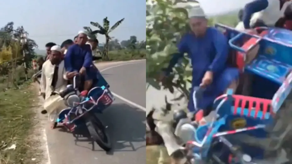 सोशल मीडिया पर अक्सर हमारे पड़ोसी मुल्क पाकिस्तान अपनी खिल्ली उड़ाते नजर आता है। लेकिन इस बार कहानी में थोड़ा ट्विस्ट है क्योंकि इस बार हंसी का पात्र पाकिस्तान नहीं बल्कि हमारा एक और पड़ोसी देश बांग्लादेश बना है। जिसका वीडियो इस वक्त सोशल मीडिया पर जमकर वायरल हो रहा है। जिसमें देखा जा सकता है कि एक ई-रिक्शा पर कई लोग सवार हैं और वह ई-रिक्शा काफी तेजी से सड़क पर रफ्तार भर रही है। अचानक सड़क पर एक मोड़ आता है और वह ई-रिक्शा वहीं सड़क पर ही पलट जाता है।