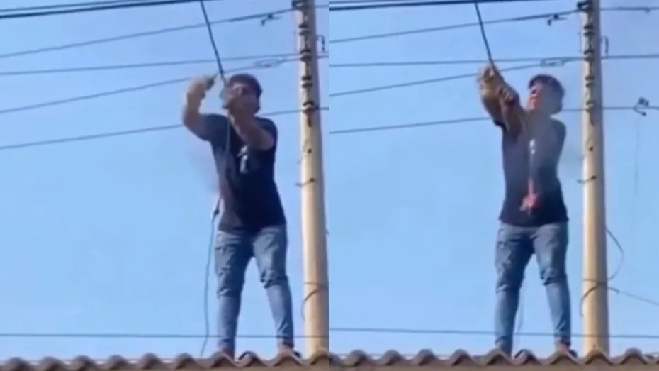 वीडियो में देखा जा सकता है कि एक लाइनमैन पोल से लटक रहे बिजली के तार को सही कर रहा है। इस दौरान तार में आग लगी हुई है और उसमें से चिंगारी निकल रही है। ऐसे में लाइनमैन बड़े आराम से छत पर खड़े होकर तार को काटता है और उसे सही करते नजर आता है। इस दौरान शख्स के चेहरे पर एक पल के लिए भी चिंता का कोई भाव नहीं दिखता। वीडियो में आप देख सकते हैं कि वह लाइनमैन सिर्फ एक दास्ताना पहने तार को ठीक कर रहा है। गलब्स पहनने से शख्स को जरा भी करंट नहीं लगता। तार में आग लगा देख कोई भी घबरा जाएगा। लेकिन इस शख्स ने तो बिना किसी तामझाम वाले इक्विपमेंट्स के ही अपना काम खत्म करके चैन लेता है।
