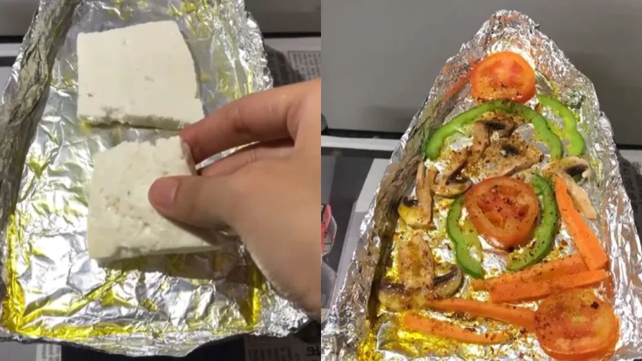 अभी जो वीडियो वायरल हो रहा है उसमें नजर आता है कि लड़की पहले तो प्रेस को एक डिब्बे में फिक्स करती है। इसके बाद वो उस प्रेस पर फॉयल बिछाती है और बचे हुए एरिया को नीचे मोड़ देती है। कुछ देर बाद दिखता है कि ऐसा करने के बाद वो उसे वहां से हटाती है और उल्टा करके प्रेस पर रख देती है। जुगाड़ू पैन बनाने के बाद वो प्रेस चालू करती है और उस जुगाड़ वाले पैन में तेल डालती है। इसके बाद वो पनीर को ग्रिल करती है। उसके बाद कुछ सब्जियों को ग्रिल करके उन्हें खाने के लिए तैयार कर लेती है।