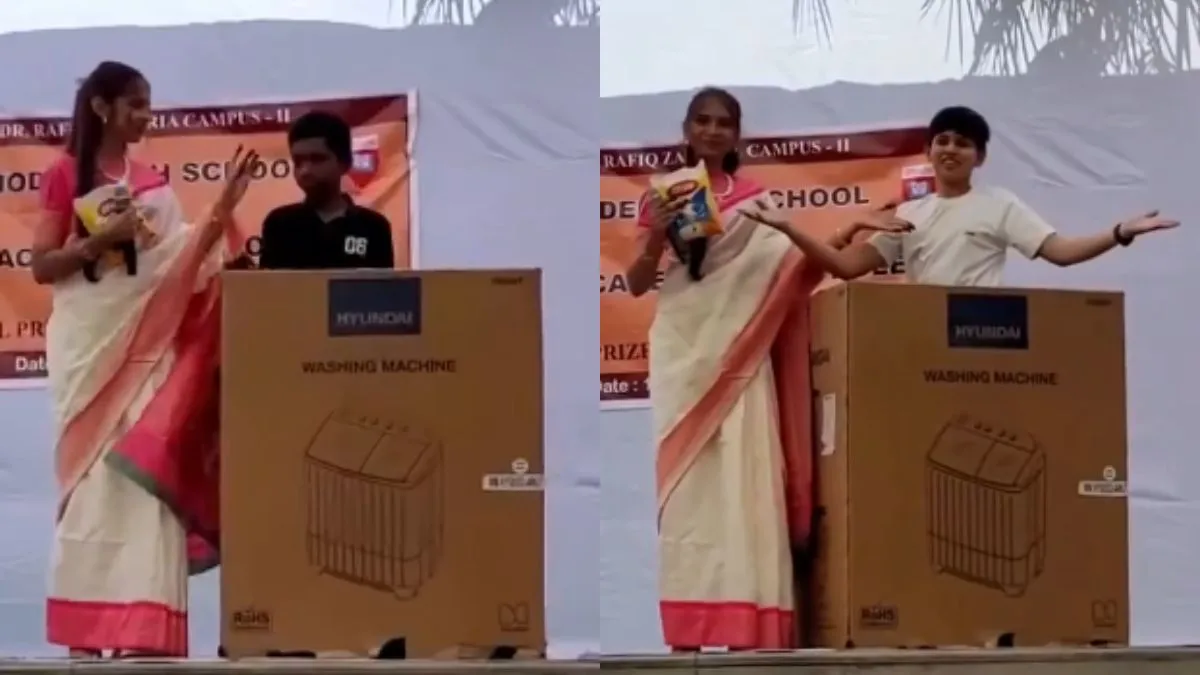 अभी जो वीडियो वायरल हो रहा है वो किसी स्कूल का मालूम पड़ता है। स्टेज पर एक लड़की खड़ी है जिसके हाथ में किसी कंपनी का डिटर्जेंट पाउडर है मगर उसका नाम नहीं पता चल रहा है। लड़की के पास में वाशिंग मशीन का बॉक्स रखा हुआ है। उसके अंदर एक बच्चा खड़ा है जो सांवले रंग का है। लड़की बच्चे को गोल घुमाती है और नीचे बैठाकर उस पर पाउडर गिराती है। कुछ देर अपने हाथ को घुमाने को बाद एक दूसरे बच्चे को बाहर निकालती है जो गोरा होता है। इस तरह लड़की ने डिजर्टेंट पाउडर का डार्क तरीके से प्रचार किया जिसका वीडियो वायरल हो रहा है।