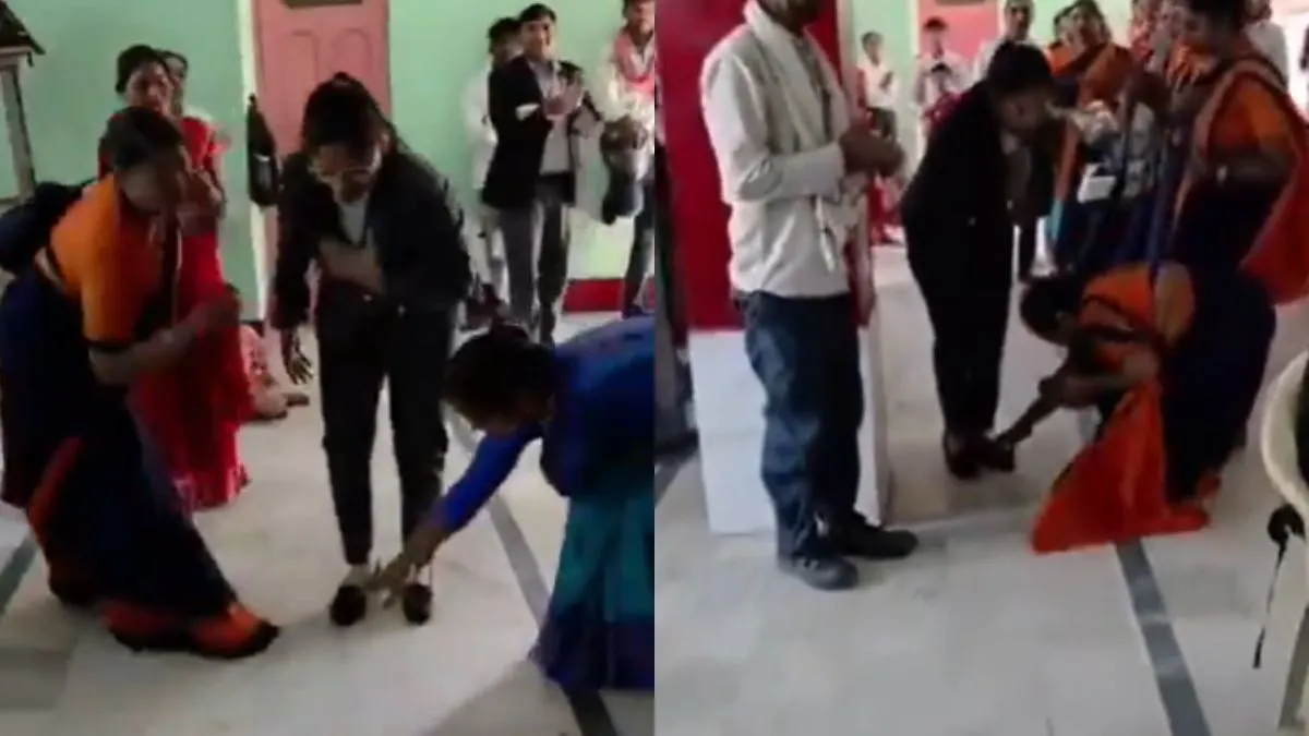 अभी जो वीडियो वायरल हो रहा है उसमें नजर आता है कि कोट-पैंट पहने एक महिला किसी कमरे में एंट्री मारती है और सभी लोग उसकी एंट्री पर ताली बजाने लगते हैं। मगर असली इज्जत का खेल तो इसके बाद शुरू होता है जब महिला कुछ दूर आती है तो कई सारी महिलाएं बारी-बारी उसके पार छूने लगते हैं। उस महिला को इस तरह ट्रीट किया जा रहा है जैसे पता नहीं उसने इनके घर पर कितने महीनों तक राशन पहुंचाया हो। अब इसी कारण वीडियो वायरल हो रहा है और लोग मजे ले रहे हैं।