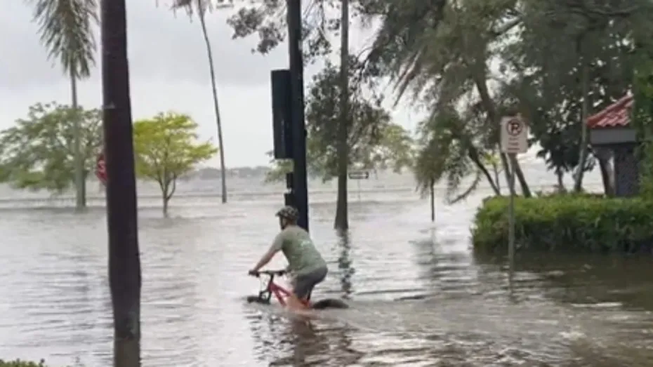 वीडियो को ट्विटर पर @policyscoop नाम के पेज से शेयर किया गया है। साथ ही कैप्शन में लिखा है- अधिकारियों की चेतावनियों के बावजूद, एक व्यक्ति आज सुबह 4 फीट से अधिक तूफ़ान के बीच बाढ़ में टेम्पा खाड़ी के आसपास अपनी साइकिल चलाने की कोशिश कर रहा है। वीडियो को खबर लिखे जाने तक 1.1 मिलियन लोगों ने देखा और 3 हजार लोगों ने लाइक किया है। वहीं, वीडियो के वायरल होते ही कमेंट सेक्शन में लोगों की प्रतिक्रियाओं की बाढ़ आ गई। कई लोगों ने बाढ़ के बीच शख्स को साइकिल से बाहर निकलते देख कहा कि लगता है गर्लफ्रेंड घर पर अकेली है और ये भाई साहब उसी से मिलने के लिए उसके घर जा रहे हैं।