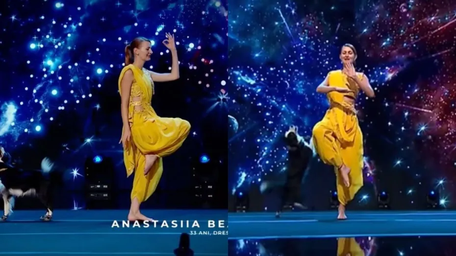 सोशल मीडिया पर इन दिनों एक डांस रियलिटी शो का वीडियो तेजी से वायरल हो रहा है। जिसमें एक विदेशी महिला शिव तांडव करती नजर आ रही है। महिला के साथ उसका पालतू कुत्ता भी है जो उसकी नकल करते हुए स्टेज पर डांस कर रहा है। महिला और कुत्ते का डांस देख सामने बैठे जज हैरान नजर आ रहे हैं और वह महिला और कुत्ते दोनों को चीयर कर रहे हैं। वीडियो में देखा जा सकता है कि एक महिला भारतीय परिधान में नजर आ रही है और इस दौरान वह स्टेज पर शिव तांडव कर रही है। वीडियो के बैकग्राउंड में शिव तांव के श्लोक बज रहे हैं। महिला के साथ स्टेज पर एक कुत्ता भी है जो उसके डांस स्टेप्स को फॉलो कर रहा है।