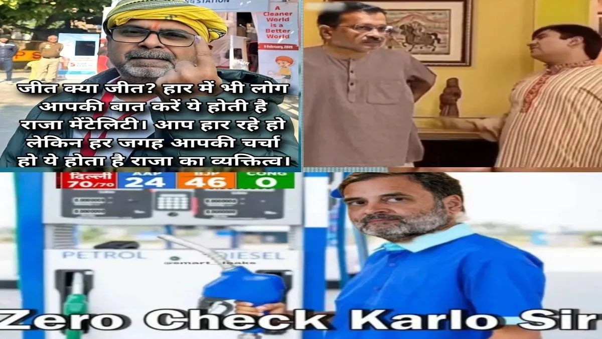 दिल्ली में विधानसभा की 70 सीटें हैं और सभी सीटों पर 5 फरवरी को एक साथ चुनाव हुए थे। आज यानी 8 फरवरी को सभी सीटों पर हुए मतदान की गिनती की गई और खबर लिखे जाने तक यह स्पष्ट हो गया कि दिल्ली में आम आदमी पार्टी की जीत का सफर यहीं तक था। भाजपा ने चुनाव में बहुमत हासिल कर लिया है और अब दिल्ली में भाजपा की सरकार बनेगी। इसके साथ ही सोशल मीडिया पर कुछ पेज और क्रिएटर्स जमकर मीम बना रहे हैं और अरविंद केजरीवाल को उन्होंने निशाना बनाया है। लेकिन इस मीम यात्रा में अरविंद केजरीवाल अकेले नहीं हैं। उनके साथ राहुल गांधी और ओझा सर पर भी खूब मीम बन रहे हैं। आइए आपको वायरल हो रहे मीम्स दिखाते हैं।