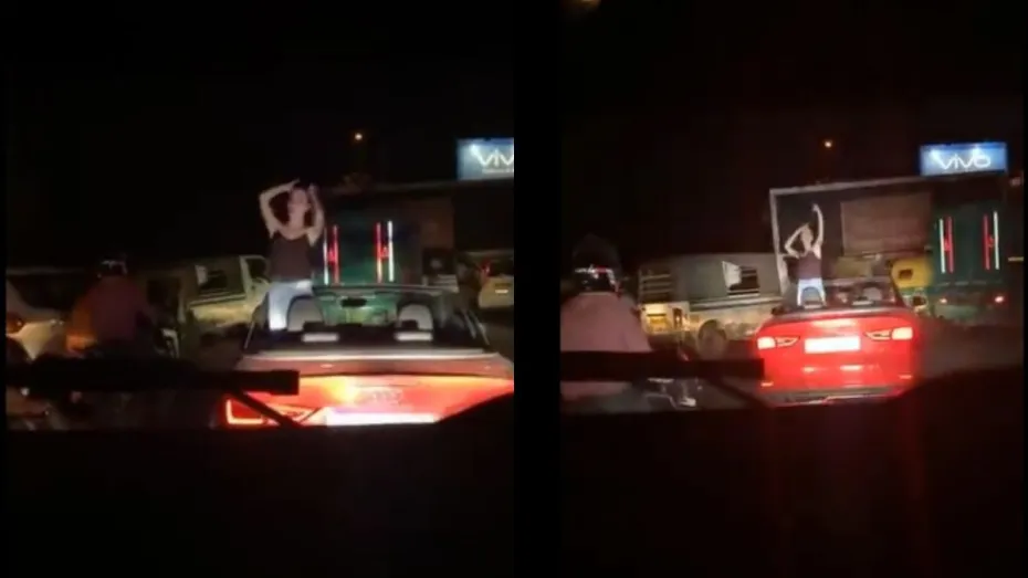 Audi कार में लड़की ने खड़े होकर किया डांस