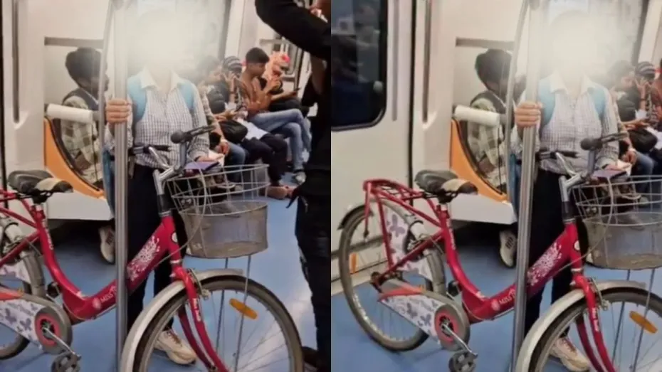 मेट्रो में साइकिल लेकर घुसी लड़की