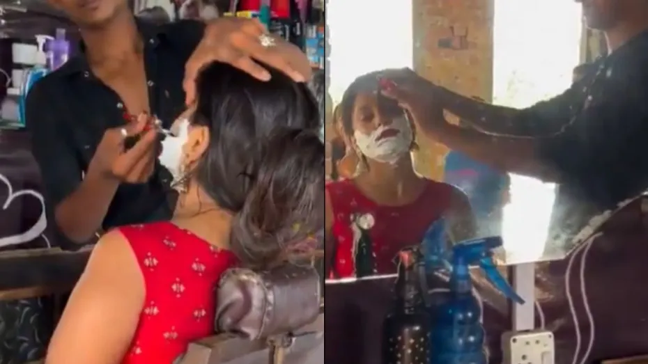 माइक्रो ब्लॉगिंग प्लेटफॉर्म एक्स (पहले ट्विटर) पर एक वीडियो वायरल हो रहा है जिसमें एक लड़की सैलुन में बैठी हुई नजर आ रही है। अब आपको बताते हैं कि इस वीडियो में हैरान करने जैसा क्या है। दरअसल लड़की के गालों पर शेविंग क्रीम लगा हुआ है और बारबर उसकी दाढ़ी क्लिन करता हुआ नजर आ रहा है। यह वीडियो कब का है और किस जगह का है, इसकी जानकारी नहीं मिल पाई है।