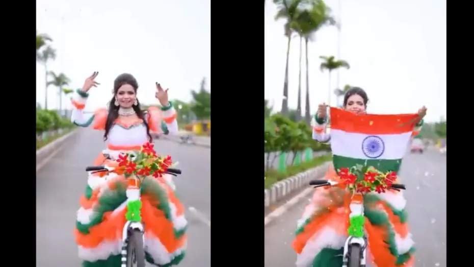 सोशल मीडिया पर वायरल हो रहा वीडियो केवल 24 सेकंड का है लेकिन इसने लोगों का दिल जीत लिया है। आजादी के दिन इस वीडियो को देखकर आपका भी दिन बन जाएगा। वीडियो में आप देख सकते हैं कि एक लड़की साइकलि पर बैठी है। लड़की ने तिरंगे जैसी ड्रेस पहनी है और साथ ही साइकिल भी तिरंगे के रंग से सजाया गया है। लड़की आपको 'ये मेरा इंडिया' गाने पर डांस करते हुए नजर आएगी। वीडियो के अंत में लड़की एक तिरंगा भी लहराते हुए आपको दिखेगी।