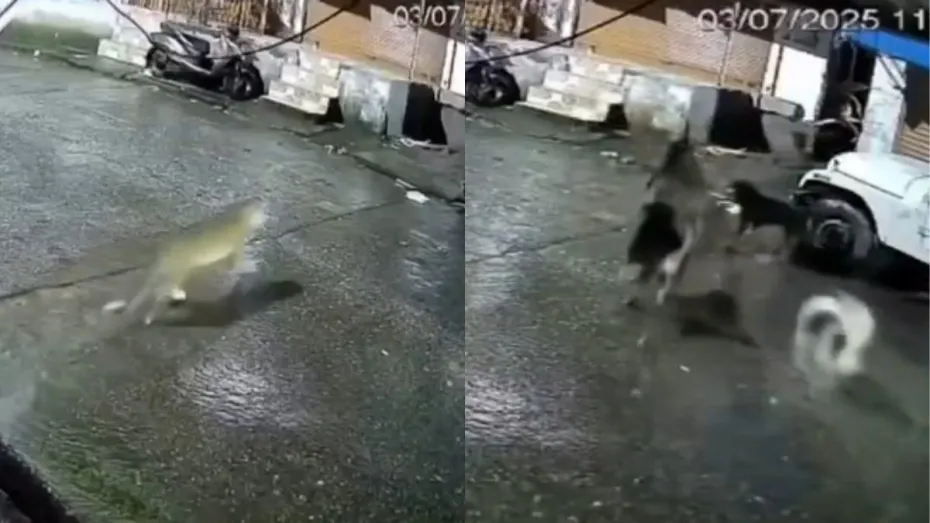 सोशल मीडिया पर एक वीडियो जमकर वायरल हो रहा है जिसमें कुत्तों की एक टोली ने एक तेंदुए को बिल्ली समझकर उसका पीछा शुरू कर दिया। लेकिन जैसे ही उनका सामना हकीकत से हुआ, वैसे ही सारे कुत्ते भाग खड़े हुए। यह पूरी घटना सड़क पर लगे सीसीटीवी कैमरे में कैद हो गई, जो अब सोशल मीडिया पर जमकर वायरल हो रहा है। 15 सेकेंड के इस वायरल वीडियो में साफ दिख रहा है कि तेंदुआ सड़क पार कर रहा था, और कुत्तों ने उसे एक बिल्ली समझकर उसका पीछा शुरू कर दिया। लेकिन जब तेंदुए ने पलटकर उन्हें हैलो बोला, तो कुत्तों की सारी हेकड़ी ही निकल गई और सारे इधर-उधर दुम दबाकर भागने लगे।