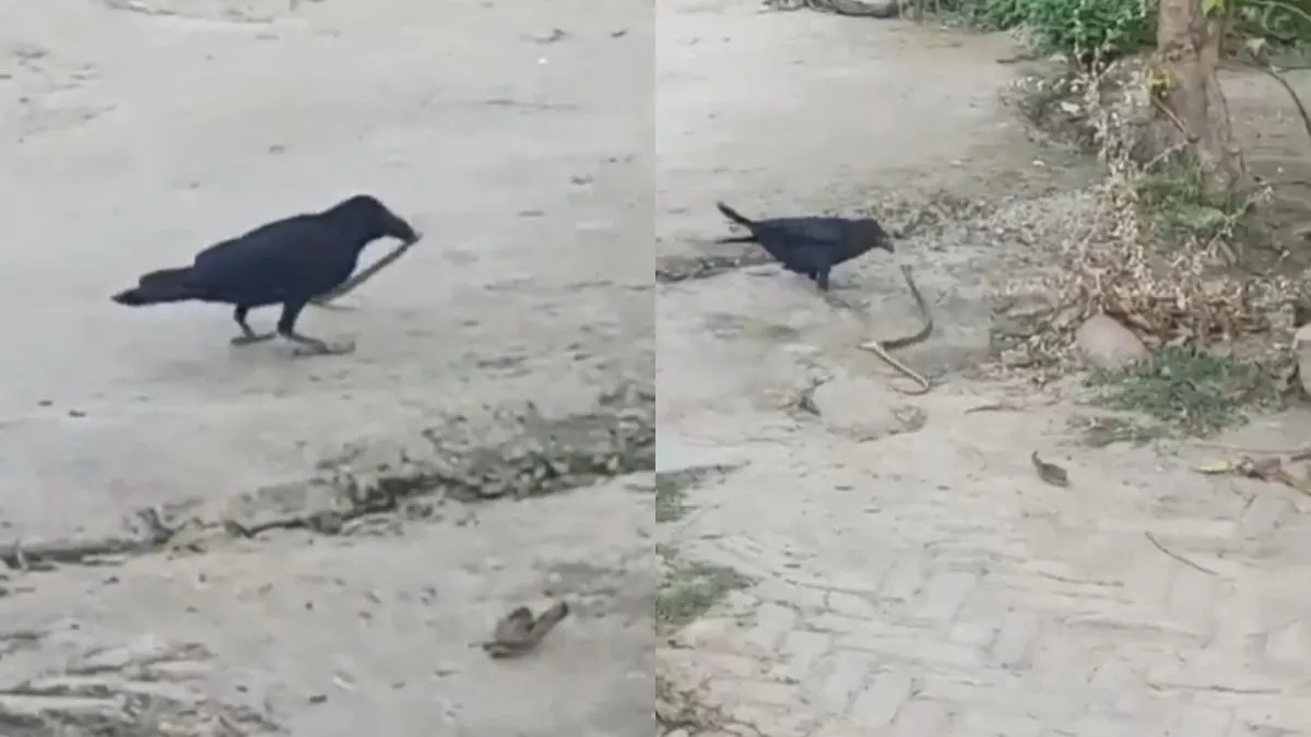 वायरल हो रहे इस वीडियो में देखा जा सकता है कि एक कौवा और सांप आमने-सामने हैं। जहां कौवा अपनी चोंच से सांप पर बार-बार हमला करते जा रहा है। वहीं, सांप उससे बचने की कोशिश में लगा हुआ है। जब वह कौवे की मार सहन नहीं कर पाता तब वे फुफकारते हुए उस पर हमला करने की कोशिश करता है। लेकिन कौवा उसे छोड़ने का नाम तक नहीं ले रहा है। वह सांप को अपनी चोंच से लगातार मारते जा रहा है। करीब 1 घंटे तक ये सिलसिला कुछ ऐसे ही चलता रहा और आखिरकार कौवे ने सांप को मारकर उसे मौत की नींद सुला दी।
