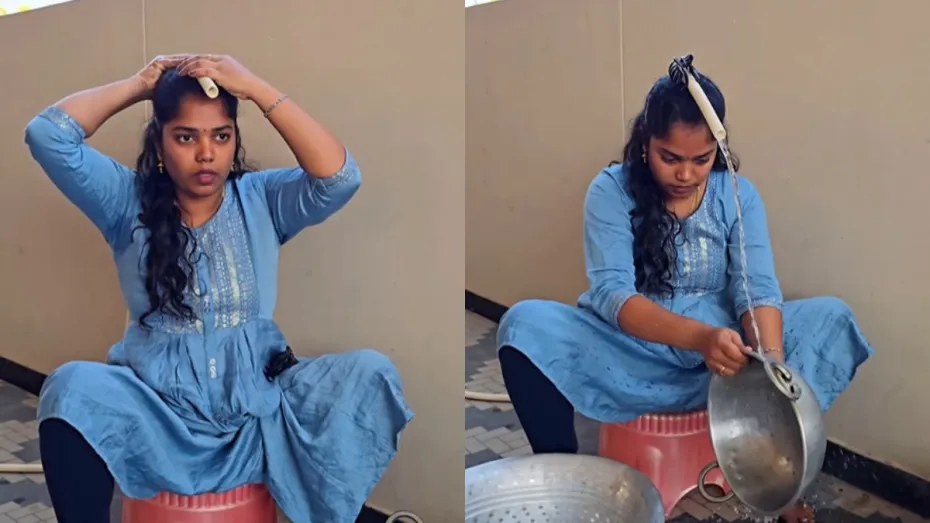 अभी जो वीडियो वायरल हो रहा है उसमें नजर आता है कि एक जगह पर महिला बहुत सारे बर्तन लेकर बैठी है। उसे वो बर्तन धोने हैं मगर दिक्कत यह है कि वहां पर नल नहीं लगा है कि वो नल को चालू करके आराम से बर्तन को धो ले। अब ऐसे में महिला ने अपना दिमाग दौड़ाया जिसके कारण वीडियो वायरल हो रहा है। वो अंदर नल में पाइप लगाकर वहां तक लाई और अपने स्टूल पर बैठ गई। इसके बाद उसने पाइप को सिर पर रखा और क्लचर लगाकर उसे लॉक कर दिया। इसके बाद पाइप से पानी सीधे उसके आगे गिरता और वो बर्तन धोने लगती है। अब वीडियो देखने के बाद आप तय कीजिएगा कि महिला के दिमाग के लिए आपको उसको 10 में से कितने नंबर देंगे।