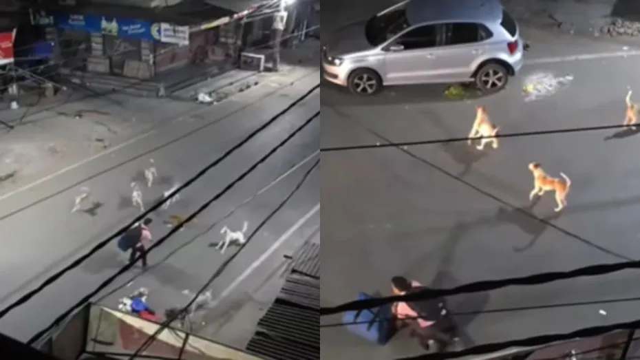 शहरों में आवारा कुत्तों का आतंक कोई नई बात नहीं। रात का अंधेरा, सन्नाटा, और अचानक भौंकते कुत्तों की फौज। ये किसी हॉरर फिल्म का सीन नहीं, बल्कि अमृतसर की सड़कों पर हुआ एक रियल ड्रामा है। जिसका वीडियो फिलहाल सोशल मीडिया पर जमकर वायरल हो रहा है। वायरल वीडियो में देखा जा सकता है कि एक शख्स को कुत्तों की गैंग ने ऐसा घेरा कि खुद को बचाने के लिए बेचारे को अपनी पैंट की बेल्ट तक उतारनी पड़ी। लेकिन कहानी में ट्विस्ट तब आया जब एक कार सवार “सुपरमैन” बनकर पहुंचा और कुत्तों को भगाकर शख्स की जान बचाई।