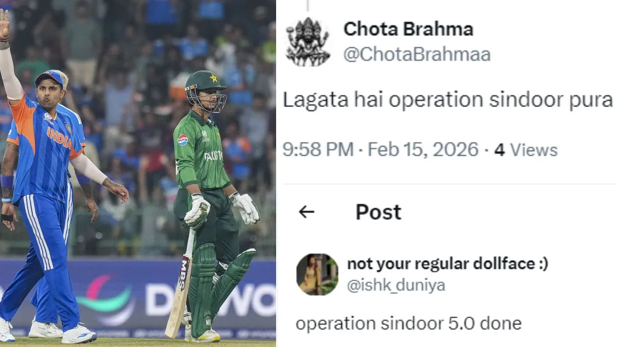 T20 World Cup 2026 में भारत-पाकिस्तान मैच में टीम इंडिया के बैट्समैन के पाकिस्तानी बॉलर्स की जबरदस्त कुटाई करने के बाद सोशल मीडिया पर मीम्स की बाढ़ गई है। कोई ऑपरेशन सिंदूर पूरा होने की तो कोई ऑपरेशन सिंदूर 5.0 की बात कर रहा है। कोई यूजर तो ये भी कहता नजर आया कि पाकिस्तान के एयरबेस की तरह पूरी टीम को धराशायी कर दिया गया है। पढ़ें सोशल मीडिया पर पाकिस्तान के बुरे प्रदर्शन को लेकर कैसे-कैसे मीम्स वायरल हो रहे हैं।