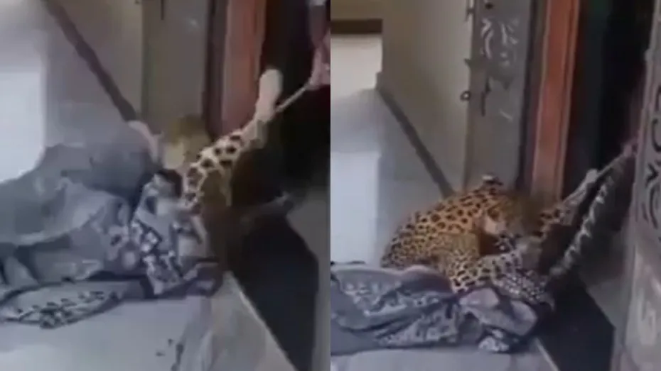 अभी जो वीडियो वायरल हो रहा है उसमें एक तेंदुआ नजर आ रहा है जिसके शरीर पर एक कपड़ा है और उसका एक पैर किसी रस्सी से बंधा हुआ है। तेंदुआ किसी के घर में घुस गया जहां पर उसे इस तरह से पकड़ लिया गया है। अब जिसने भी उस तेंदुए को पकड़ा है, सोचिए उसके अंदर कितनी हिम्मत होगी क्योंकि ऐसे जानवरों को देखते ही लोगों की हालत खराब हो जाती है और लोग खुद की जान बचाने के लिए भागने लगते हैं। ऐसे में किसी ने उस तेंदुए को पकड़ा है। वीडियो कहां और कब का है, इसकी जानकारी तो नहीं दी गई है मगर अनोखा होने के कारण वायरल हो रहा है।