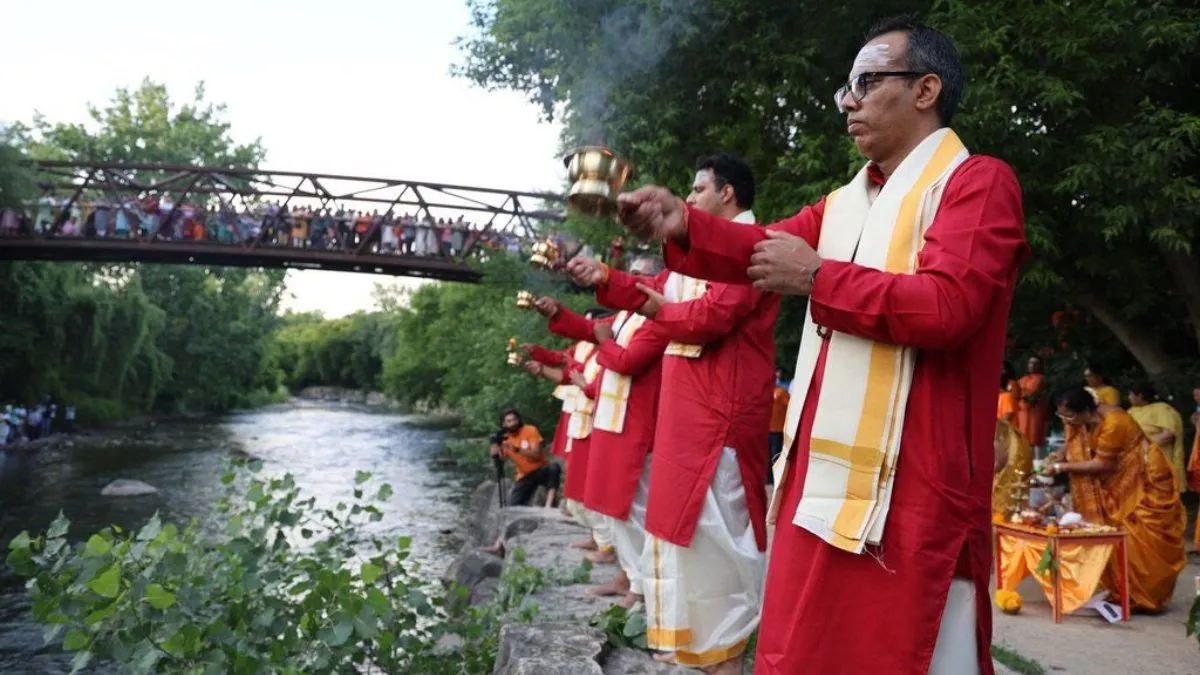 कनाडा के मिसिसॉगा शहर में क्रेडिट नदी के किनारे प्रवासी भारतीयों ने गंगा आरती की। जिसकी तस्वीरें और वीडियो इस वक्त सोशल मीडिया पर जमकर वायरल हो रहे हैं। इस मामले ने न केवल विदेश में भारतीय सांस्कृतिक परंपरा की झलक दिखाई बल्कि इसने सोशल मीडिया पर भी बहस छेड़ दी। नदी के किनारे हुई गंगा आरती को रेडियो धिशुम की टीम ने आयोजित किया था। उनके अनुसार यह भारतीय परंपराओं को विदेशी धरती पर जीवंत करने का एक प्रयास था। इस समारोह में भारतीय वाणिज्य दूतावास, टोरंटो के काउंसल संजीव सकलानी ने भी हिस्सा लिया। दूतावास ने इसे "दिव्य भजनों और पवित्र मंत्रों की आत्मीय संध्या" करार देते हुए सोशल मीडिया पर इसकी तस्वीरें और वीडियो भी शेयर किए।