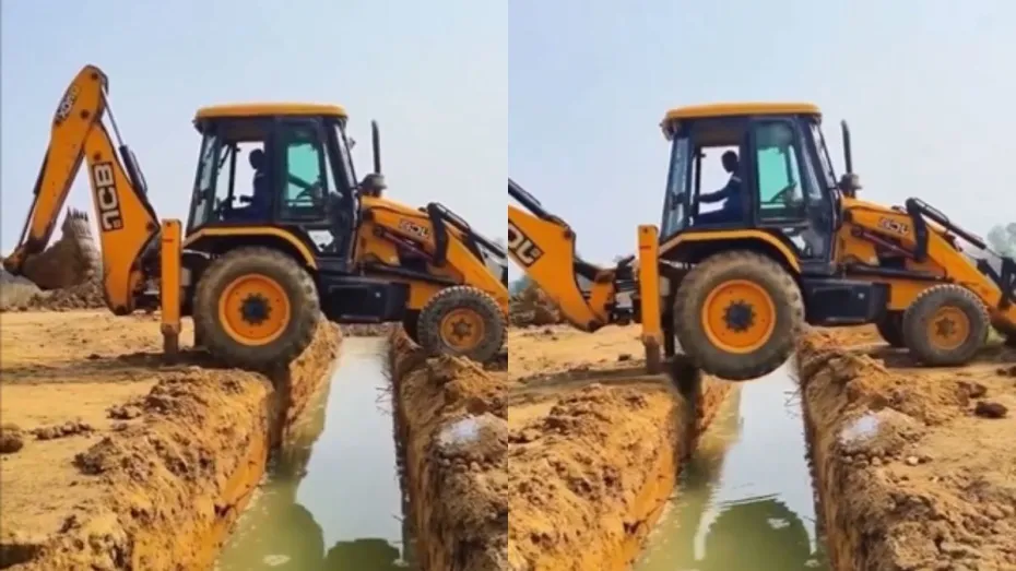 वीडियो में देखा जा सकता है कि एक जेसीबी का ड्राइवर जेसीबी के पंजे की मदद से JCB को एक बहुत बड़ा सा नाला पार करा देता है। ऐसा करने के लिए वह पहले JCB के पहले पंजे को जमीन पर रखता है और उसके सहारे आगे के दो पहिए पार करा देता है फिर बारी आती है पीछे के भारी भरकम टायर्स को पार कराने की। इसके लिए ड्राइवर पीछे की सीट पर जाता है और JCB के निकले हुए पंजे से जेसीबी को उठाकर उस बड़े से नाले को पार करा देता है। ड्राइवर के इस स्किल को देखकर यह कहा जा सकता है कि JCB चलाने का अनुभव उसके पास सालों पुराना है। वीडियो को देखने के बाद लोग JCB ड्राइवर के इस स्किल की तारीफ करते थक नहीं रहे हैं।