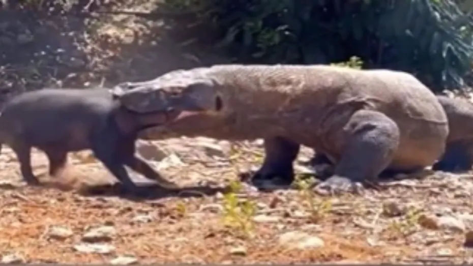 सूअर को जिंदा चबाने लगा कोमडो ड्रैगन