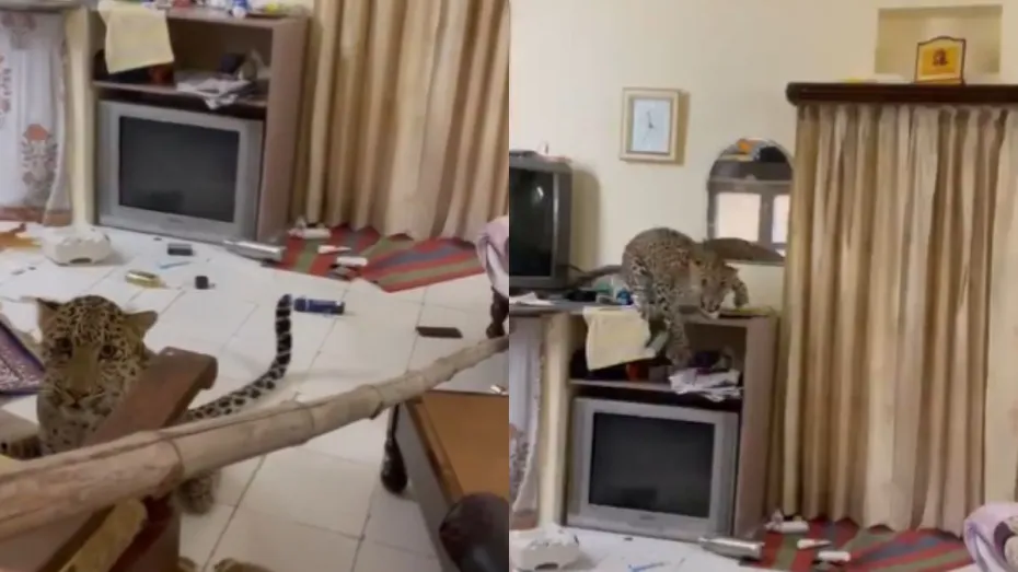 आपने अक्सर सुना होगा कि तेंदुआ जंगल से निकलकर शहर में आ गया। लोकिन जरा यो सोचकर देखिए कि आप किसी होटल में गए हों और जब सुबह आप अपने कमरे में उठें तो आपको सामने बैठा एक तेंदुआ दिखाई दे। ये तो सोचकर ही इंसान बिल्कुल डर जाएगा। लेकिन ये घटना बिल्कुल सच है। सोशल मीडिया पर इस घटना का वीडियो तेजी से वायरल हो रहा है। जहां होटल के एक कमरे में एक तेंदुआ घुस गया।