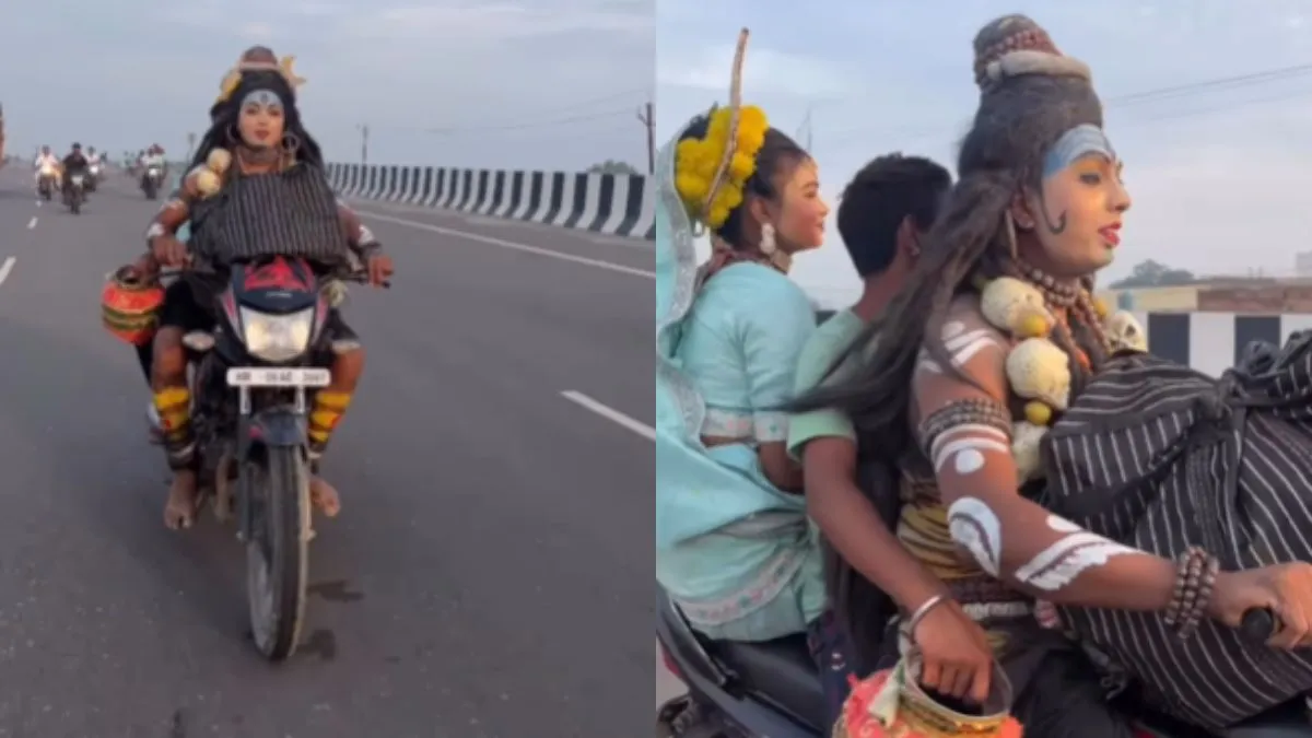 सावन का महीना भगवान भोलेनाथ की भक्ति में डूबा होता है। इस पवित्र महीने में शिवभक्त कांवड़ यात्रा के लिए हरिद्वार और अन्य गंगा घाटों की ओर निकल पड़ते हैं। इस दौरान सड़कों पर अनोखे और रोचक नजारे देखने को मिलते हैं। ऐसा ही एक नजारा सोशल मीडिया पर वायरल हो रहा है, जिसमें एक परिवार बाइक पर भगवान शिव और माता पार्वती के रूप में कांवड़ यात्रा के लिए निकला है।