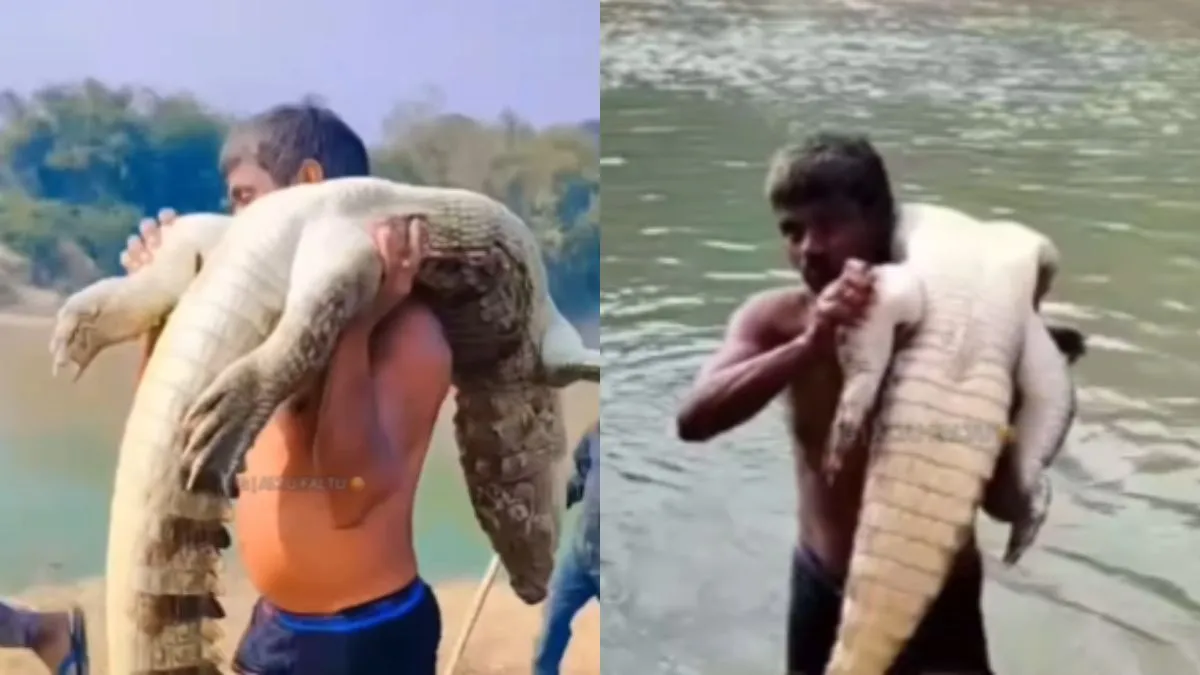 सोशल मीडिया पर कभी-कभी हमें कुछ ऐसा देखने को मिल जाता है। जिसे देखने के बाद हमारी आंखें फटी की फटी रह जाती हैं। हाल में एक ऐसा ही वीडियो सामने आया है। जिसमें एक अधेड़ उम्र का व्यक्ति अपने कंधे पर मगरमच्छ लाद कर ले जा रहा है। वैसे तो मगरमच्छ को देखते ही लोग कोसों दूर भागते हैं, लेकिन इस शख्स को देख ऐसा नहीं बिल्कुल नहीं लग रहा कि उसके अंदर डर नाम की कोई चीज है। वीडियो को देखने के बाद लोग हैरान रह गए और कमेंट कर अपनी प्रतिक्रिया देने लगे।