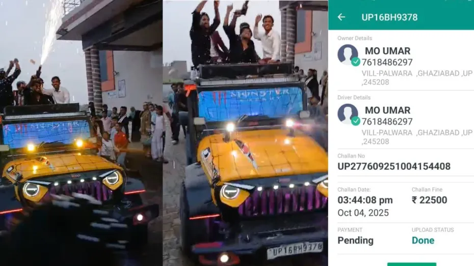 Viral Video: उत्तर प्रदेश के हापुड़ में कुछ युवकों द्वारा जीप में सवार होकर आतिशबाजी की जा रही थी। साथ ही गाड़ी सवार लोगों द्वारा जीप को डांसिंग जीप बनाकर जमकर स्टंटबाजी करते हुए रील बनाई जा रही थी जिसका वीडियो सोशल मीडिया पर वायरल होने के बाद हापुड़ पुलिस द्वारा इन स्टंटबाजों को सबक सिखाते हुए इस डांसिंग जीप का 22,500 रुपये का चालान काटा गया है। वायरल वीडियो जनपद हापुड़ के बहादुरगढ़ थाना क्षेत्र के पलवाड़ा गांव का बताया जा रहा है।