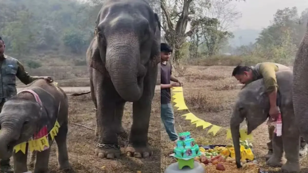 Viral Video: असम में हाथी प्रेमी बिपिन कश्यप ने हाल ही में प्रियांशी (जिसे मोमो भी कहा जाता है) नामक एक नन्हे पालतू हाथी के बच्चे का जन्मदिन मनाया। यह उत्सव सोशल मीडिया पर तेजी से वायरल हो गया। यह वीडियो बिपिन कश्यप ने इंस्टाग्राम पर शेयर किया है। वीडियो में बिपिन कश्यप को प्रियांशी का जन्मदिन मनाते और जन्मदिन का गीत गाते हुए देखा जा सकता है। हाथी के प्रति उनका प्यार और खुशी दर्शकों के दिलों को छू गई है।