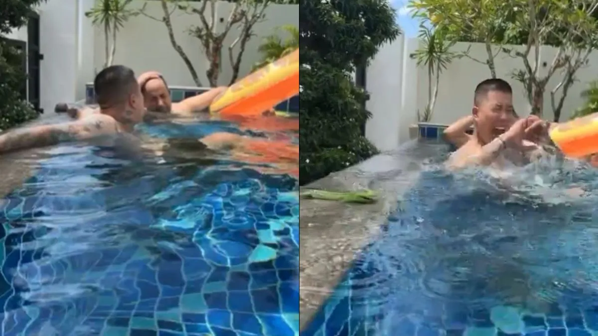 वीडियो में देखा जा सकता है कि एक स्विमिंग पूल में दो दोस्त मजे से नहा रहे हैं। तभी उनके एक दोस्त को मस्ती सूझी और उसने उनके साथ ऐसा प्रैंक किया कि वे उसे जीवन भर याद रखेंगे। दरअसल, पूल में नहा रहे दोस्तों के उस फ्रेंड ने पीछे से एक छोटा सा मगरमच्छ वाला खिलौना स्विमिंग पूल की दीवार पर रख दिया। जिसके बाद उनमें से अपने एक दोस्त की उंगली पर काट ली। जब उसके दोस्त स्विमिंग पूल के पीछे पलट कर देखते हैं तो वे मगरमच्छ को देख इस कदर डर जाते हैं कि उनकी चीख निकल गई। उनमें से एक तो ऐसा डरता है कि वह डर के मारे स्विमिंग पूल से बाहर ही भाग जाता है और दीवार से होते हुए वह नीचे गिर जाता है।