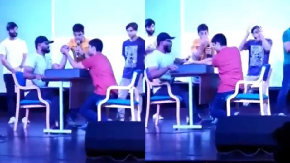 आज के समय में आर्म रेसलिंग यानी पंजा लड़ाना एक जाना माना खेल हो गया है। यह खेल पहले सिर्फ WWE में ही देखने को मिलता था लेकिन आजकल इस खेल को पूरी दुनिया में आयोजित किया जा रहा है। कई लोग ऐसे ही मौज-मस्ती में एक दूसरे से पंजा लड़ाने लगते हैं। लोग पंजा लड़ाकर अपने शारीरिक ताकत का प्रदर्शन करते हैं। लेकिन कई पंजा लड़ाना लोगों को भारी भी पड़ता है। लोग खेल-खेल में खुद को नुकसान पहुंचा लेते हैं। ऐसा ही एक वीडियो सोशल मीडिया पर इन दिनों वायरल हो रहा है। जहां एक लड़के को पंजा लड़ाना बहुत ही भारी पड़ गया।